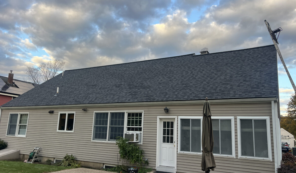 Keep in mind that 3-tab shingles are becoming less common in our area. Most Attleboro homeowners today choose architectural shingles because they last longer (typically 25 to 30 years of real-world service life in our climate), handle wind better, and the price gap has narrowed. Metal is a smaller share of the market here, but it is growing — especially on coastal-facing homes and additions with low-slope or flat roofing sections.